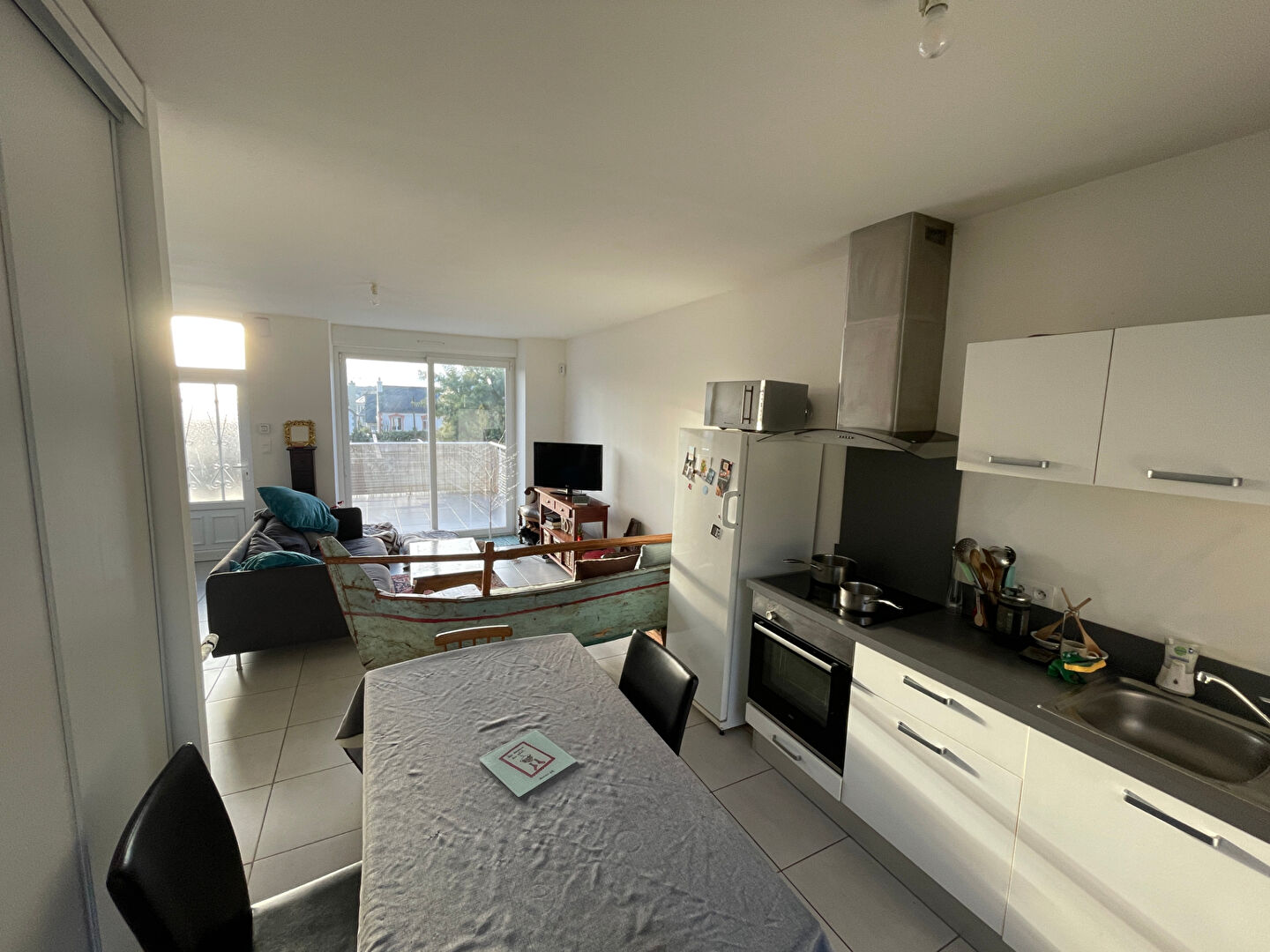 Au rez-de-chaussée, elle est composée d’un séjour avec coin cuisine aménagé et équipé donnant sur une terrasse, une chambre et une salle d’eau.