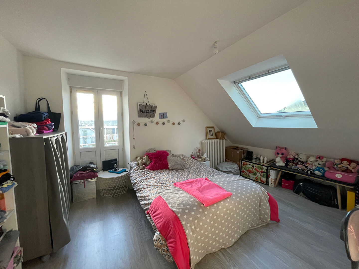 A l’étage, 2 grandes chambres et une salle de bains.