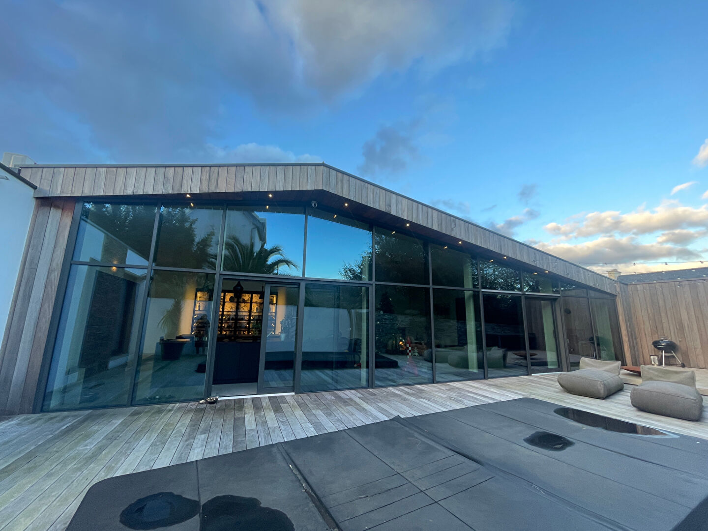 Un garage où vous pouvez mettre 2 véhicules ainsi qu’un coin détente avec un jacuzzi et une piscine à contre courant complètent ce coup de coeur.