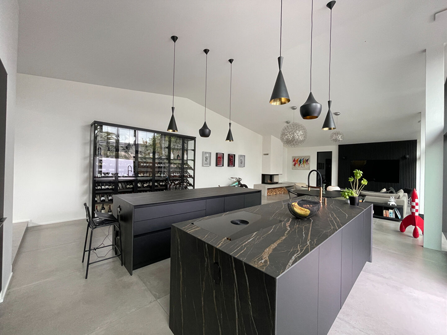 Ce loft coup de coeur unique sur le marché de 210 m² aux prestations hauts de gamme se compose d’une entrée avec placard, d’un séjour cathédrale de 100m² avec une cave à vins, une cuisine aménagée et équipée avec une arrière cuisine.